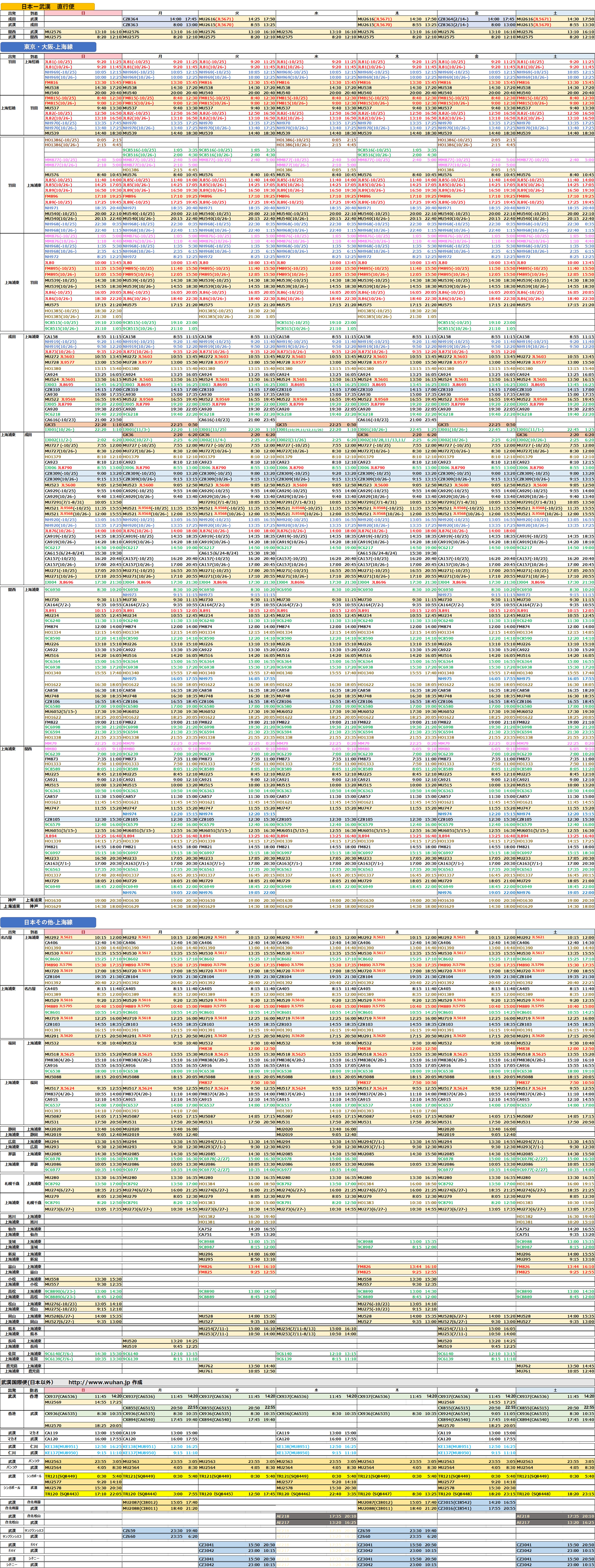 日中フライト時刻表 北京・広州・深圳・大連・天津